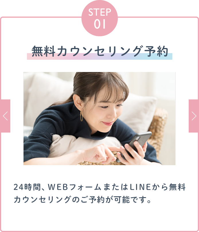 ご相談は無料ですので、まずはカウンセリングだけでも安心してご来院ください。